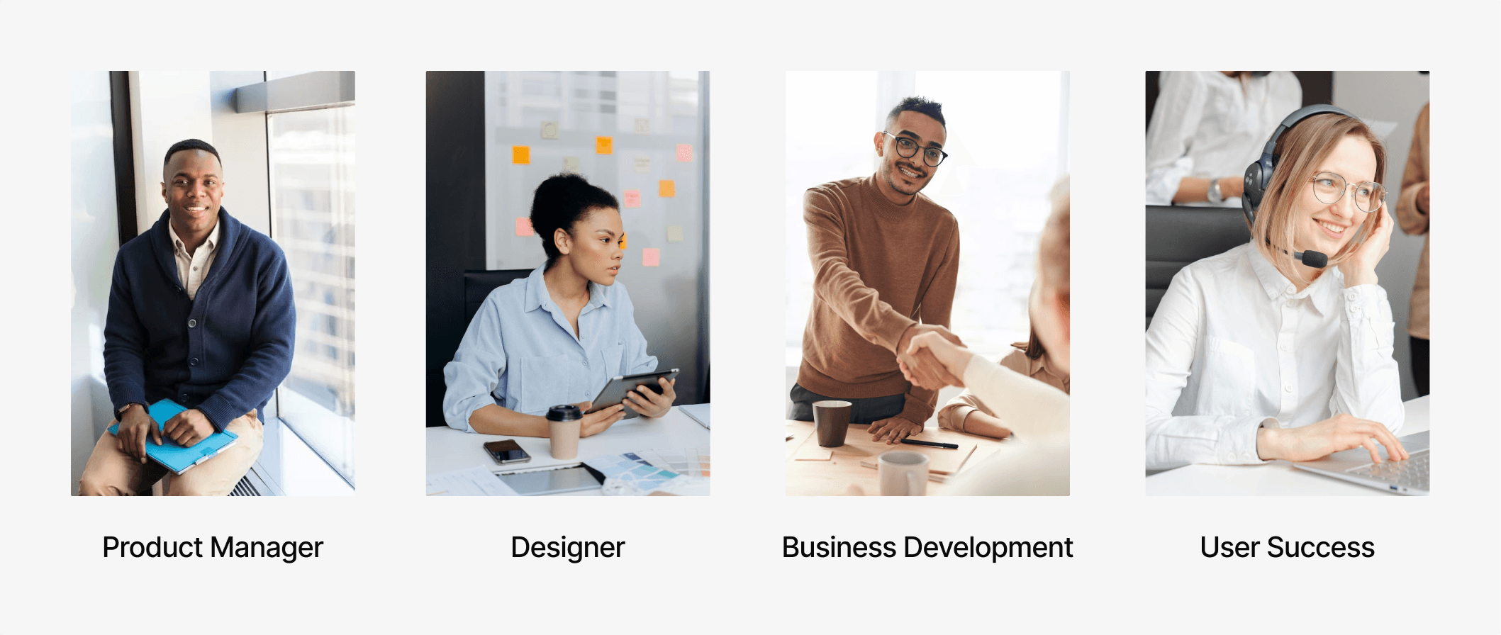 User Success, Business Development, UX Researcher, UX Writer, and Product Manager