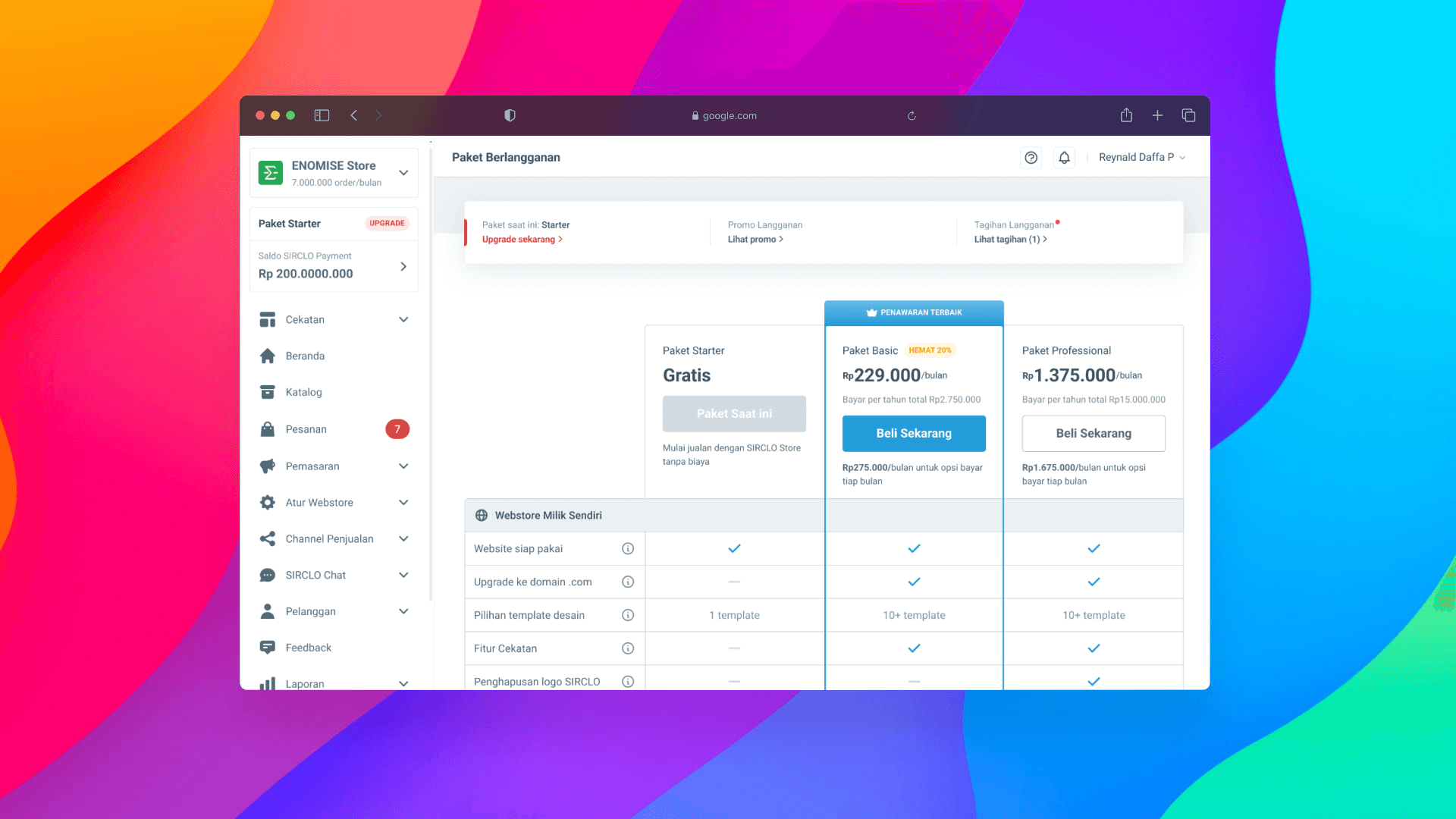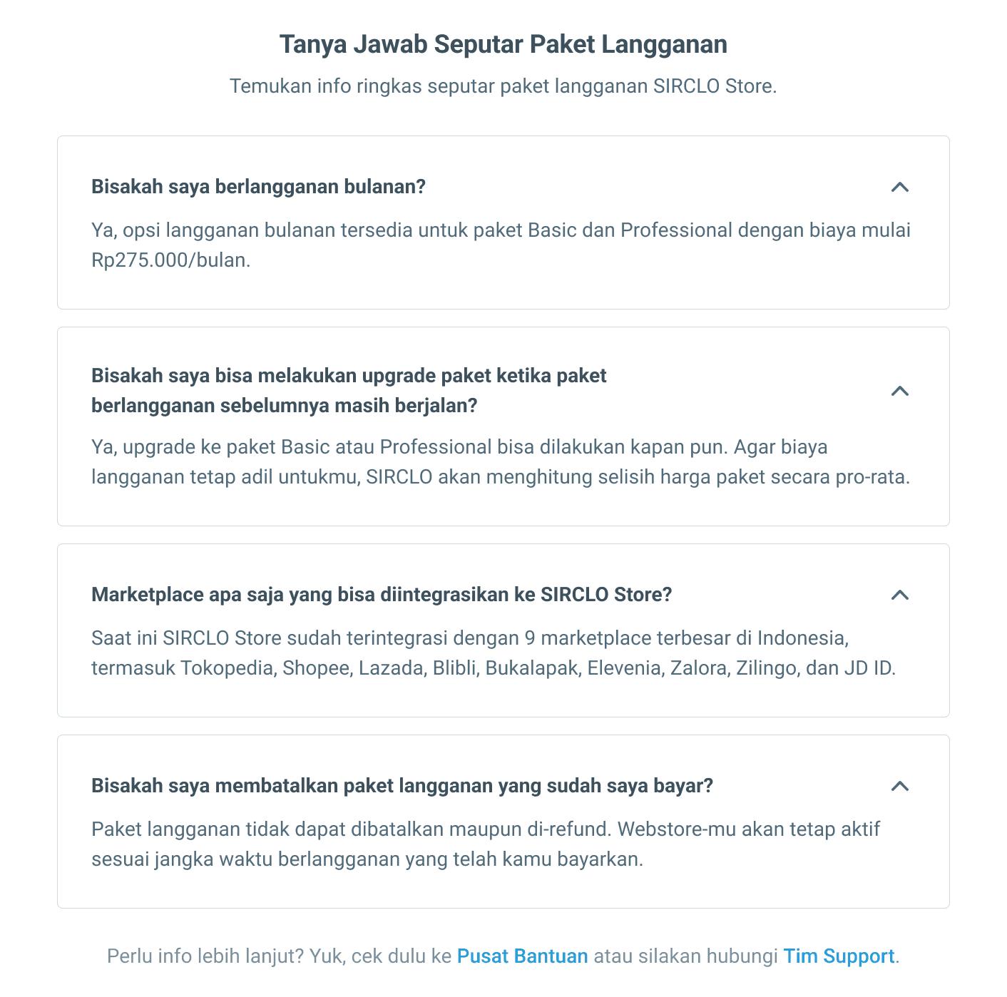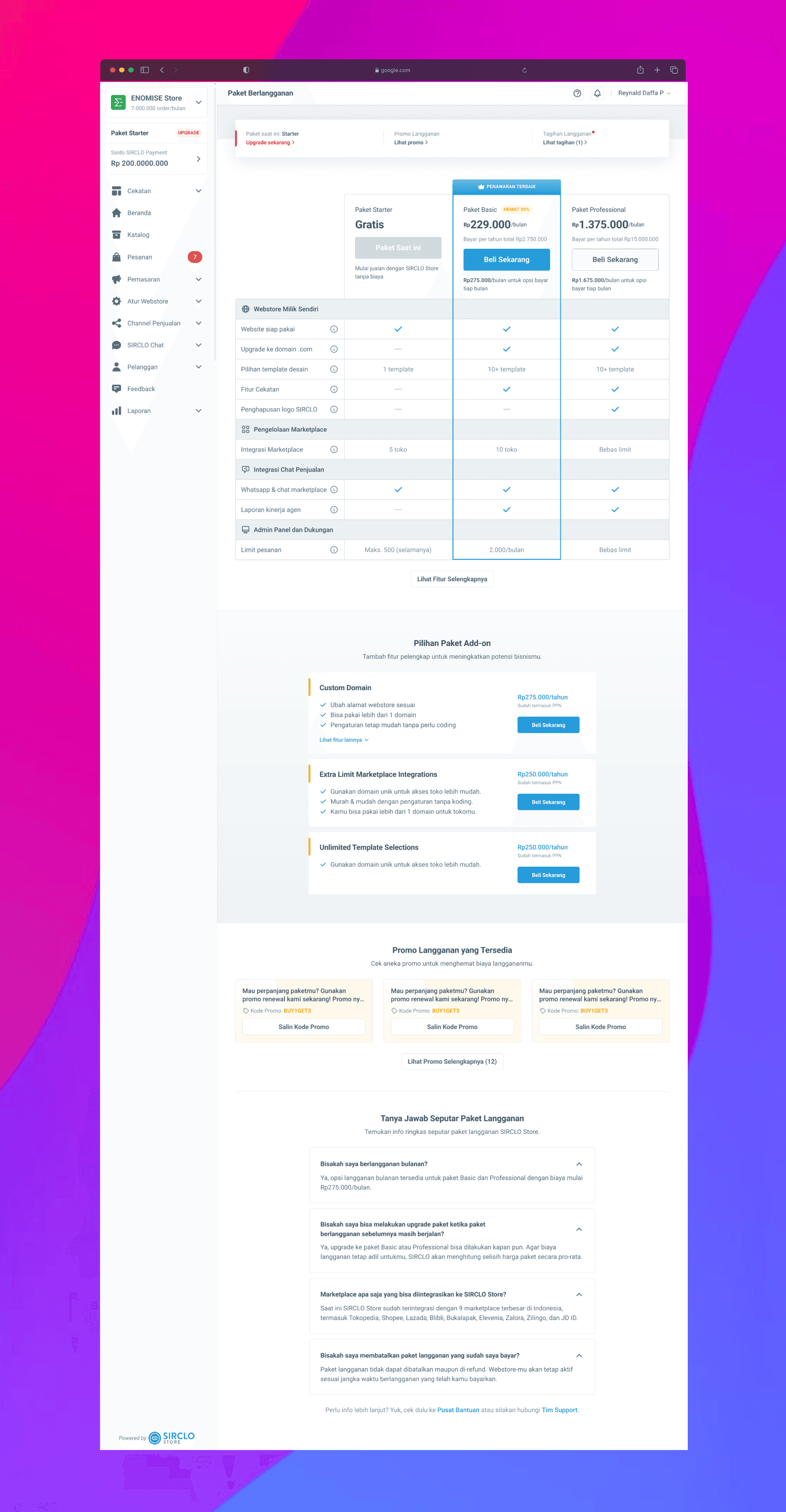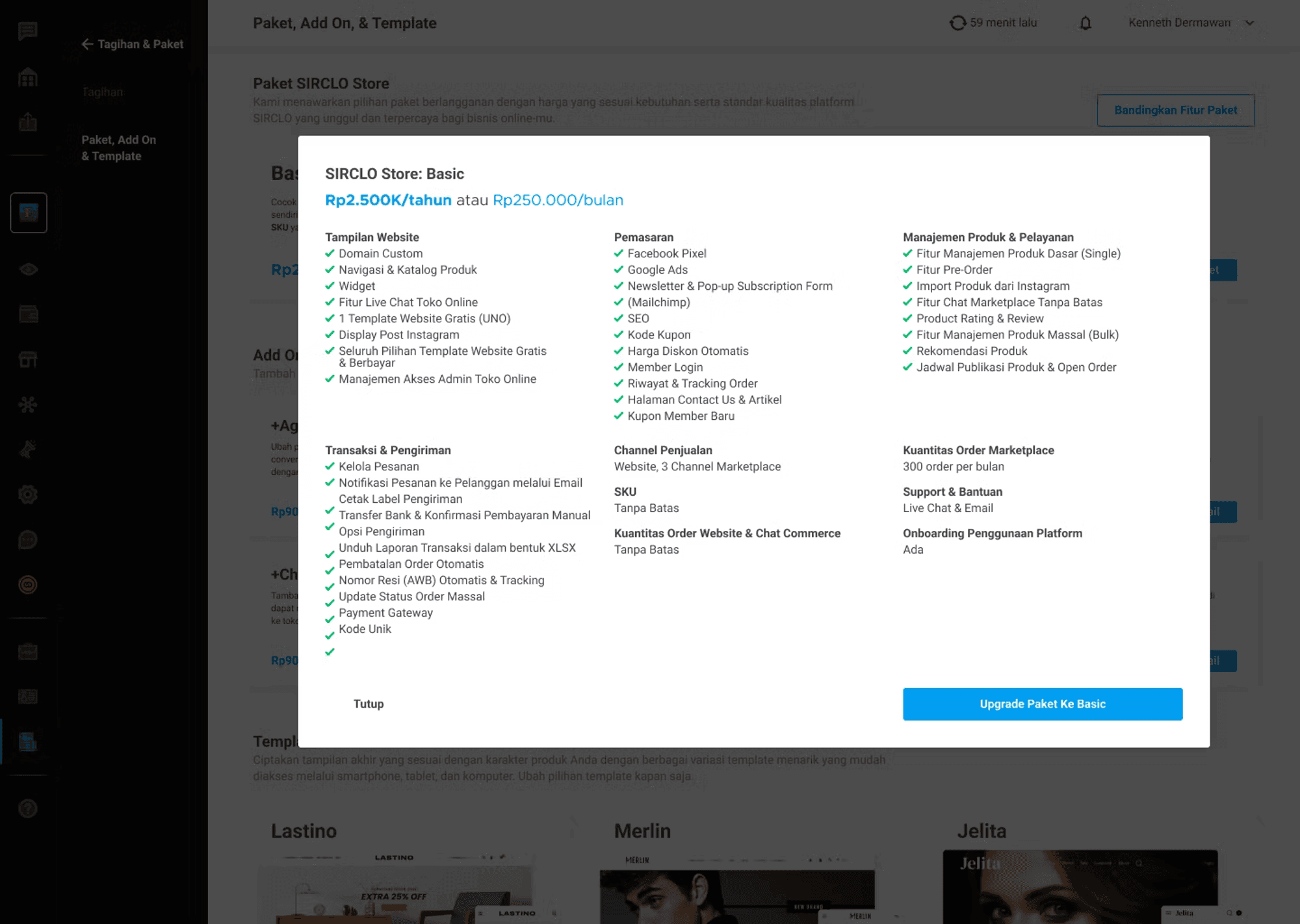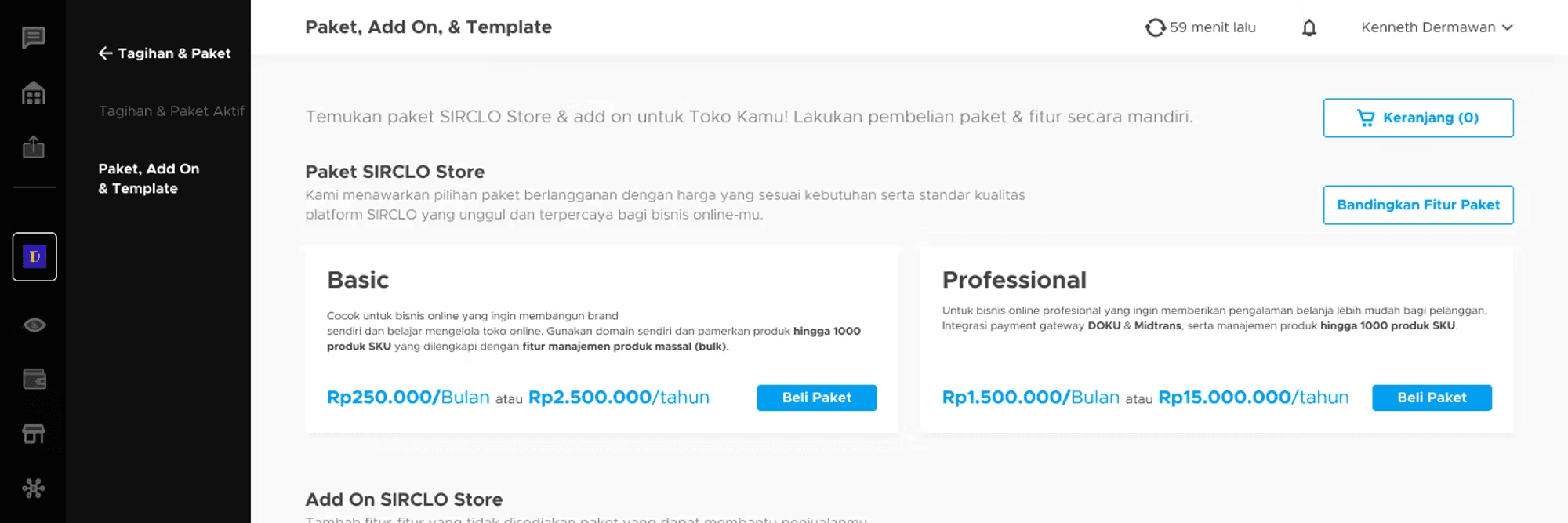 Joining or subscribe packages at SIRCLO is a piece of cake! Just reach out to User Success team or hop on over to our "Tagihan dan Paket" page and subscribe directly. You can choose from our Basic and Pro plans to perfectly fit your business needs. And the best part? You can easily keep track of your subscription bill.